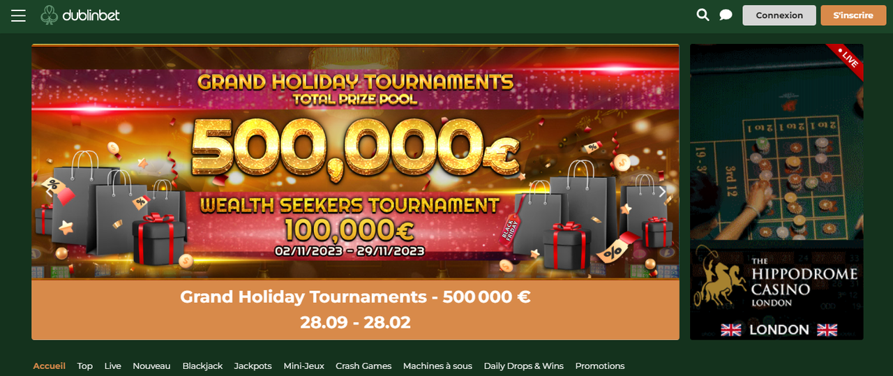 • Casino en direct : C’est le cœur de DublinBet. Nous avons testé les tables de live roulette, live blackjack et autres jeux animés par de vrais croupiers. L’expérience est fluide et captivante.
