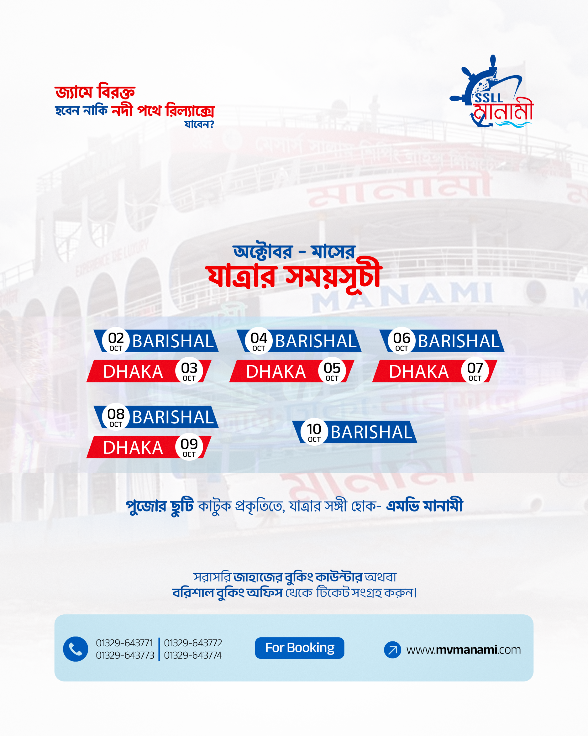 October Month’s Schedule: (As per rotation system) This is a temporary journey schedule. Departure time may change as per the authority’s decision at any time.